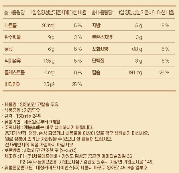 대상웰라이프 뉴케어 영양한잔 고칼슘 두유 150ml (72개) : 다나와 가격비교