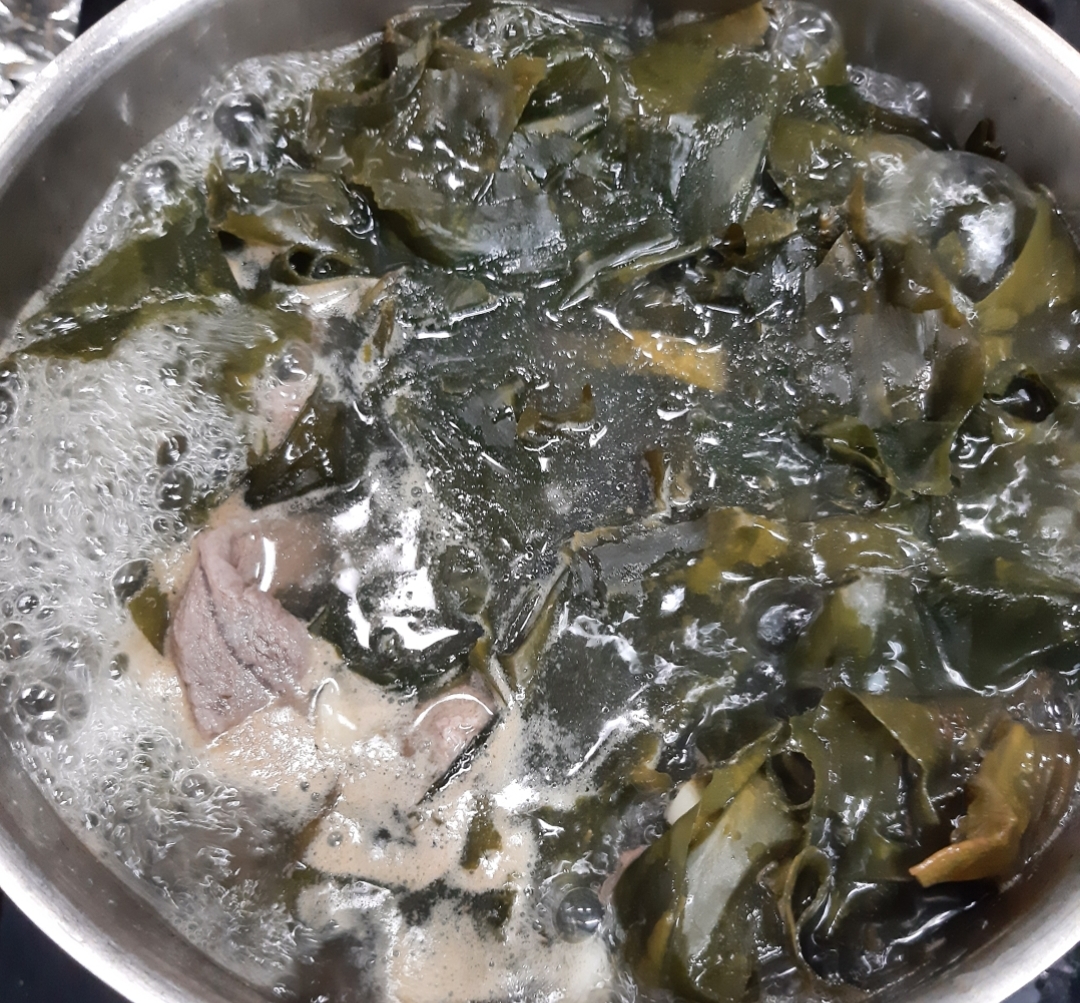 레시피에 나오는, 고기나 미역을 기름에 볶는 건 생략.