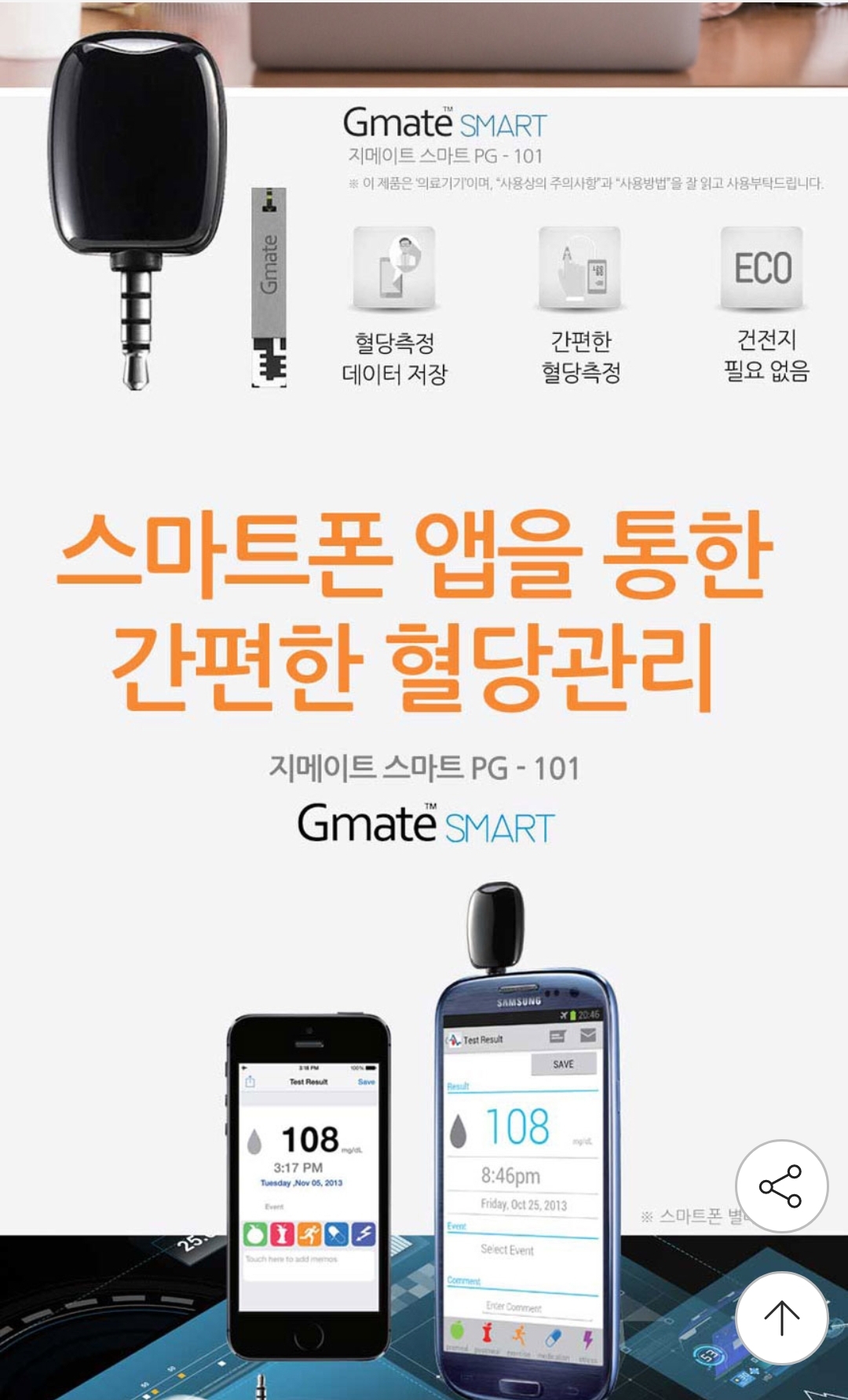 스마트폰 3.5파이 이어폰단자에 꽂아 사용하는 혈당측정기 본문