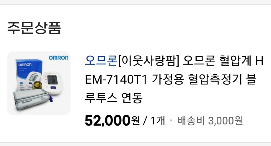 오므론것, 블루투스되는 팔뚝형2 혈압계 모델로는 좋은 가격입니다.