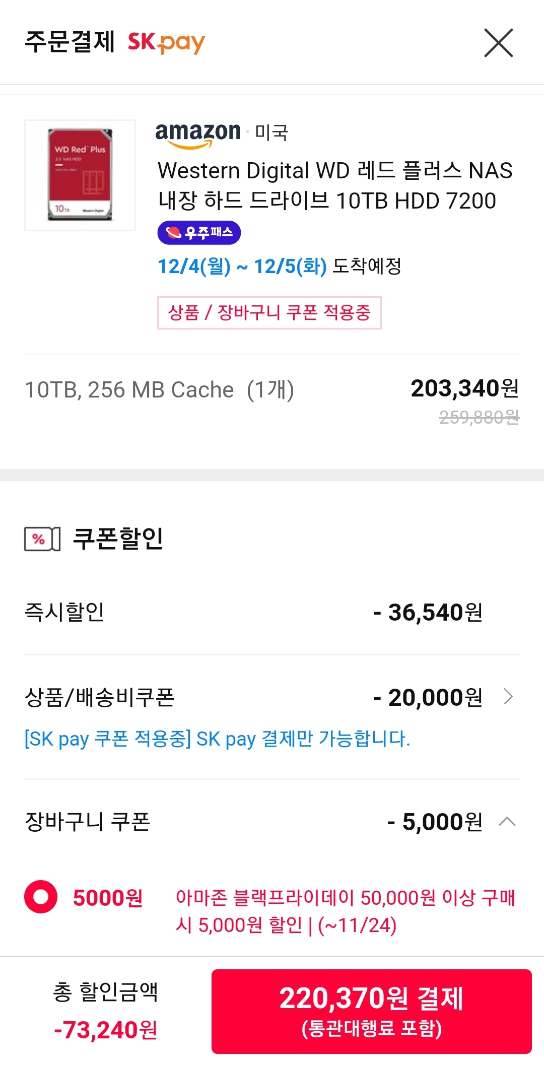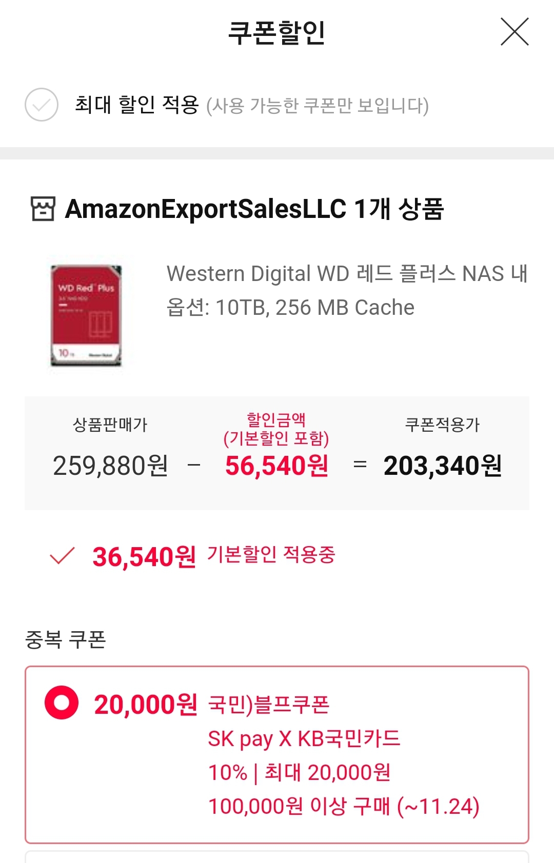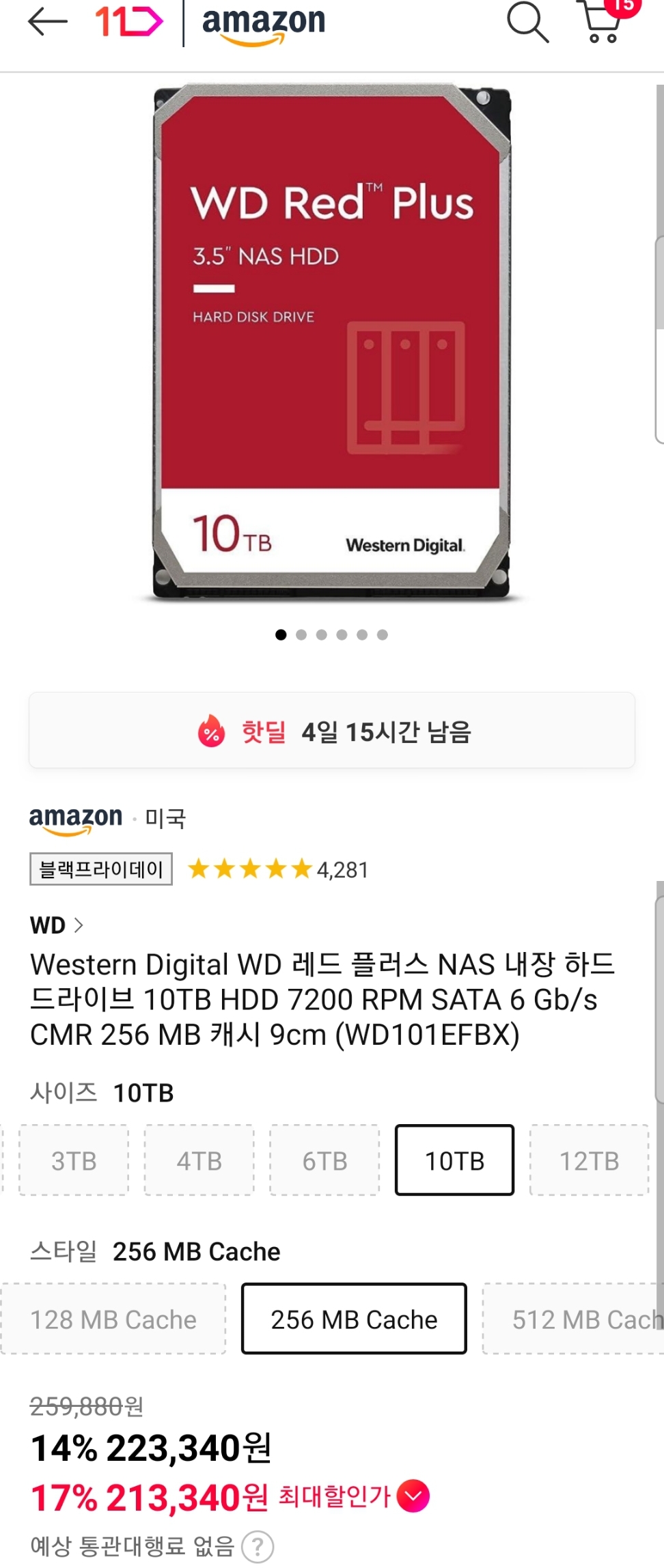 (11번가-아마존) WD 레드 플러스 NAS 10TB HDD 7200rpm CMR 256MB (WD101EFBX) (~22만) 본문