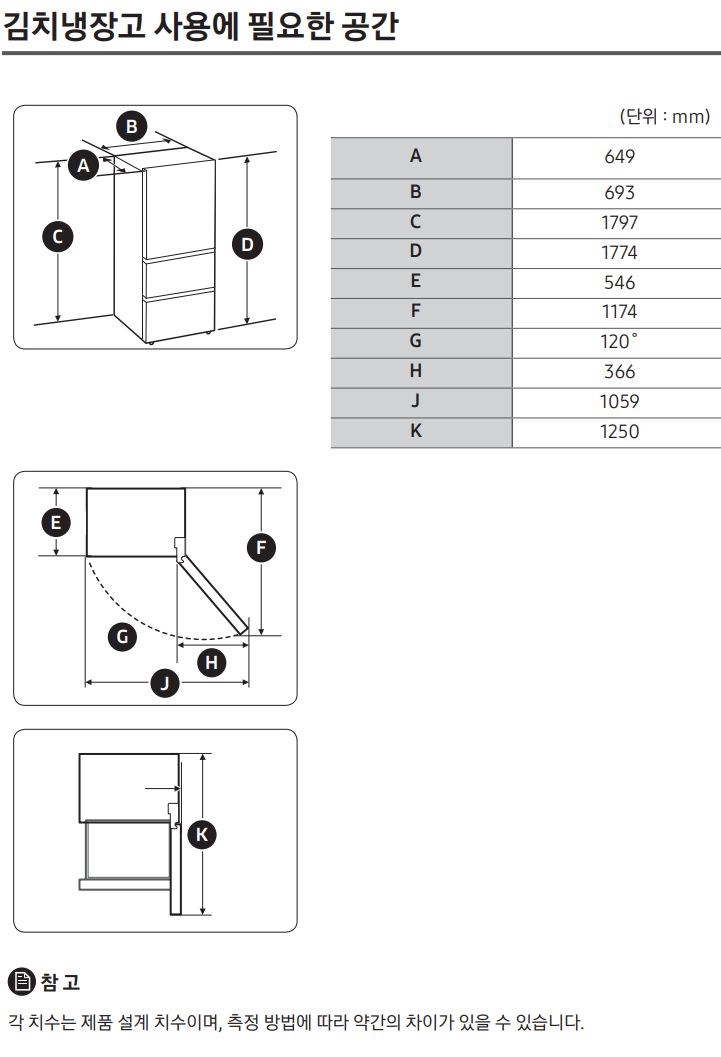 그리고 깊이가 65cm정도입니다. (좌우와 뒤로 약 5cm정도 여유는 필요합니다. 이것도 냉장고니까) 그래서 약 70cm 정도 필요. 비교하면 850리터내외인 4도어냉장고가 깊이 약 92cm정도고 설치할 때 약 1미터 정도 필요합니다.