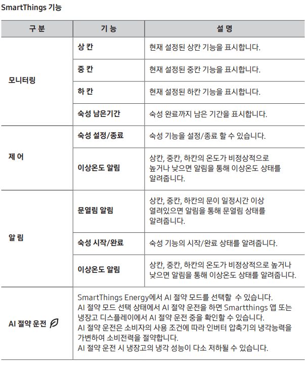 냉동, 냉장기능 등 몇 가지 메모