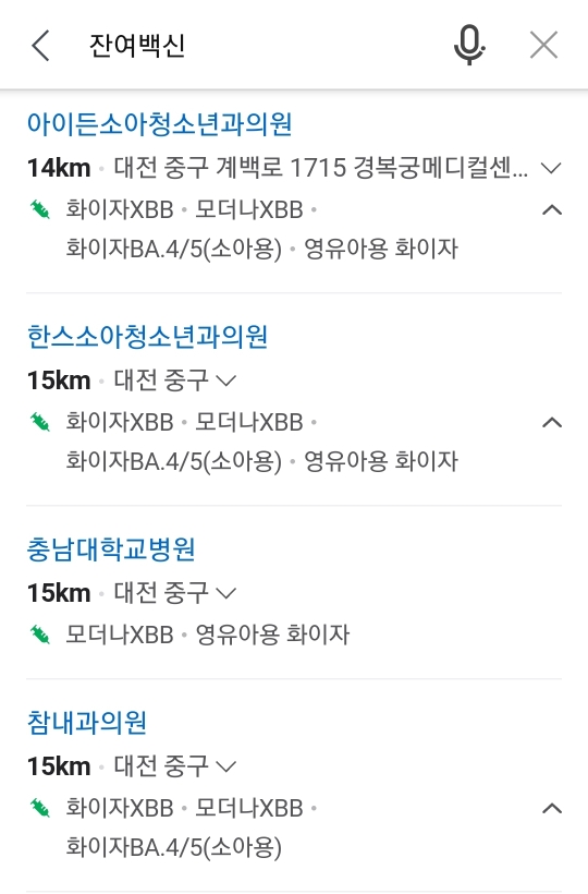 요즘 네이버지도앱에서 '잔여백신'이라고 치면 나오는 목록인데요, 다 똑같지는 않아서 아마 접종하는 병원인 것 같지만, 의미는 잘 모르겠네요.