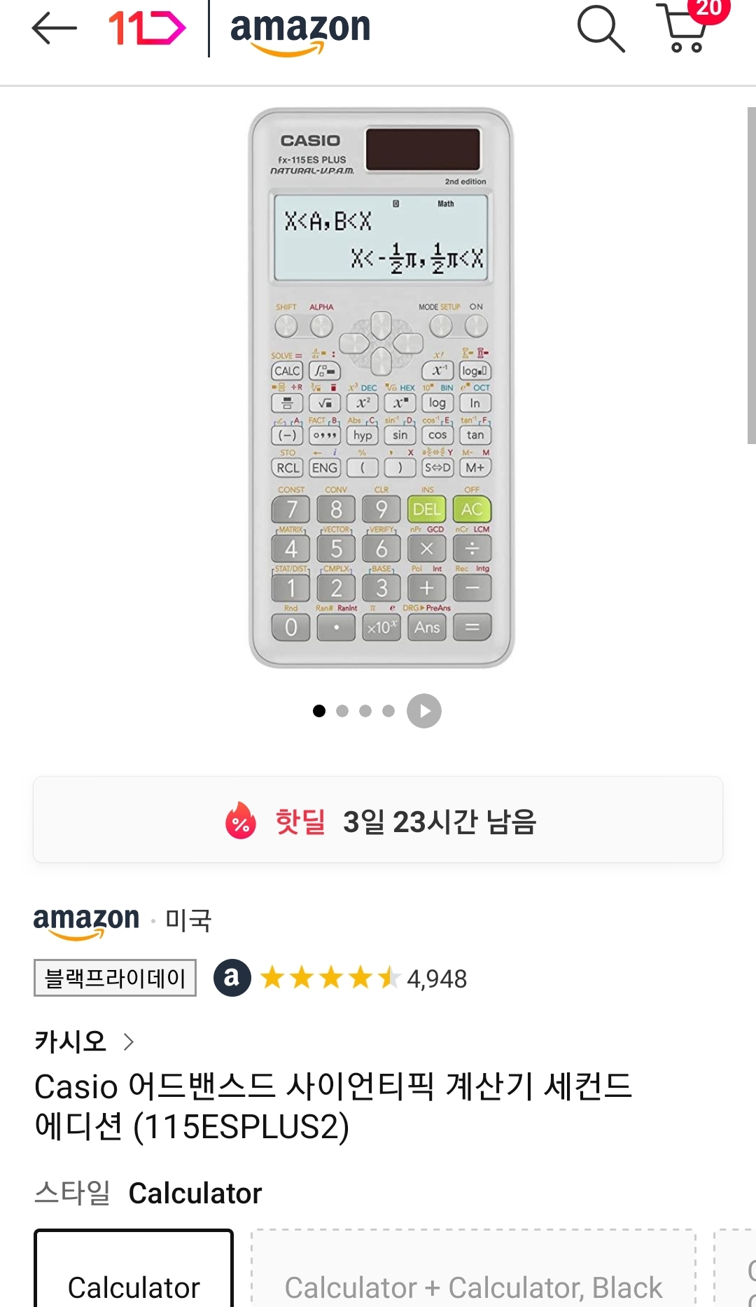 (11번가-아마존) Casio fx-115ESPLUS2 2nd Edition (115ESPLUS2) 계산기 (~2만원/우주패스) 본문