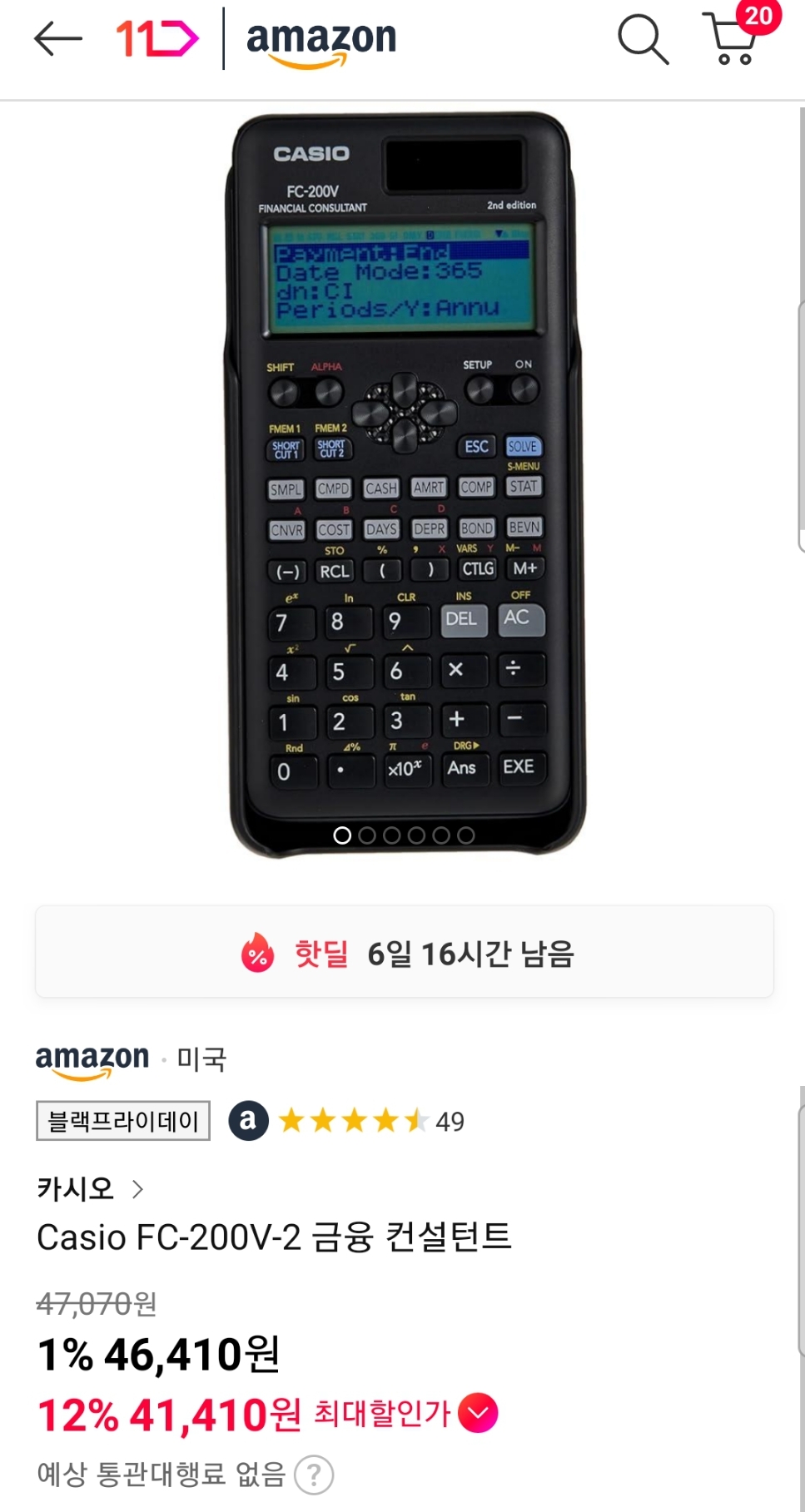 금융계산기입니다. 딜목록에 올랐는데 평소 눈여겨본 기종이 아니라서 좋은 가격대인지는 잘 모르겠네요.