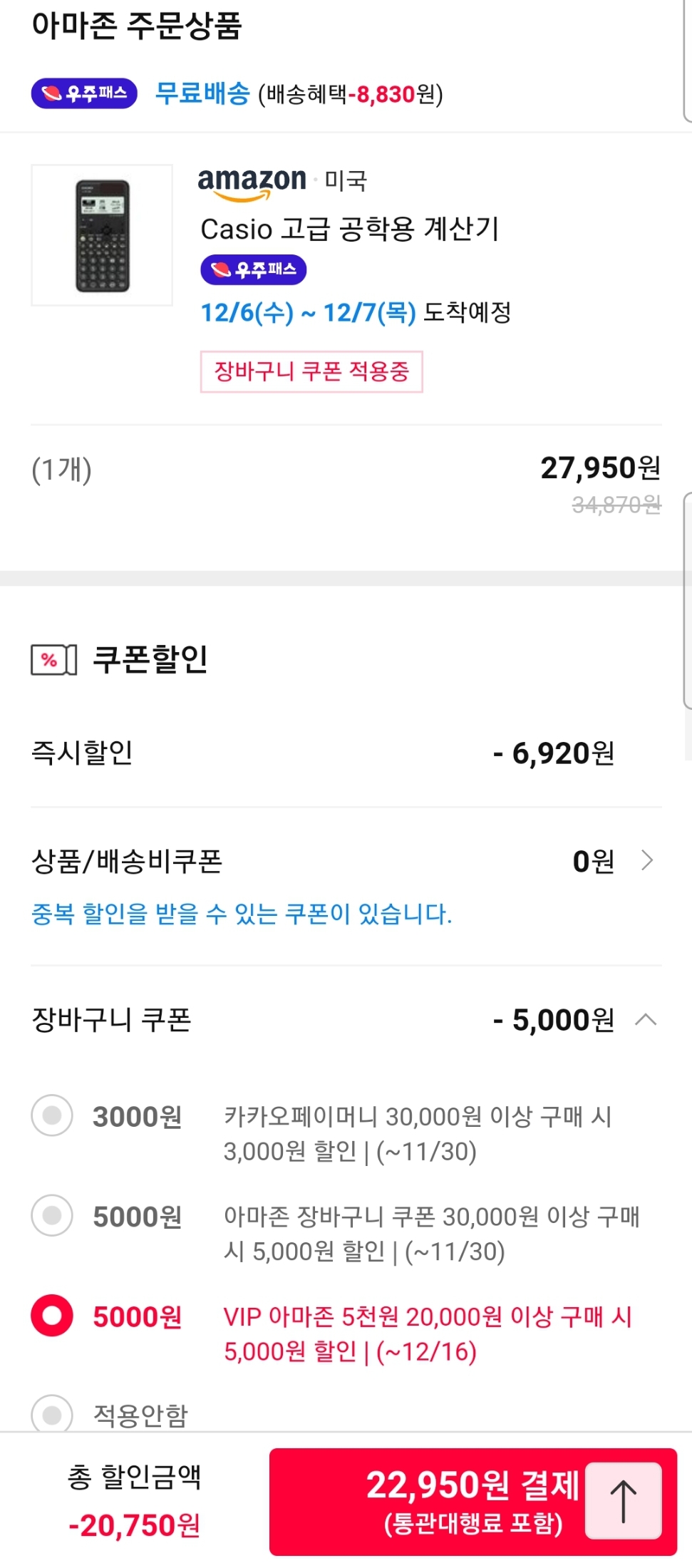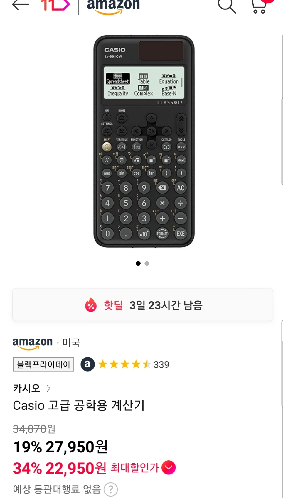 (11번가-아마존) Casio 공학용계산기 FX-991CW (~2.3만/우주패스) 본문