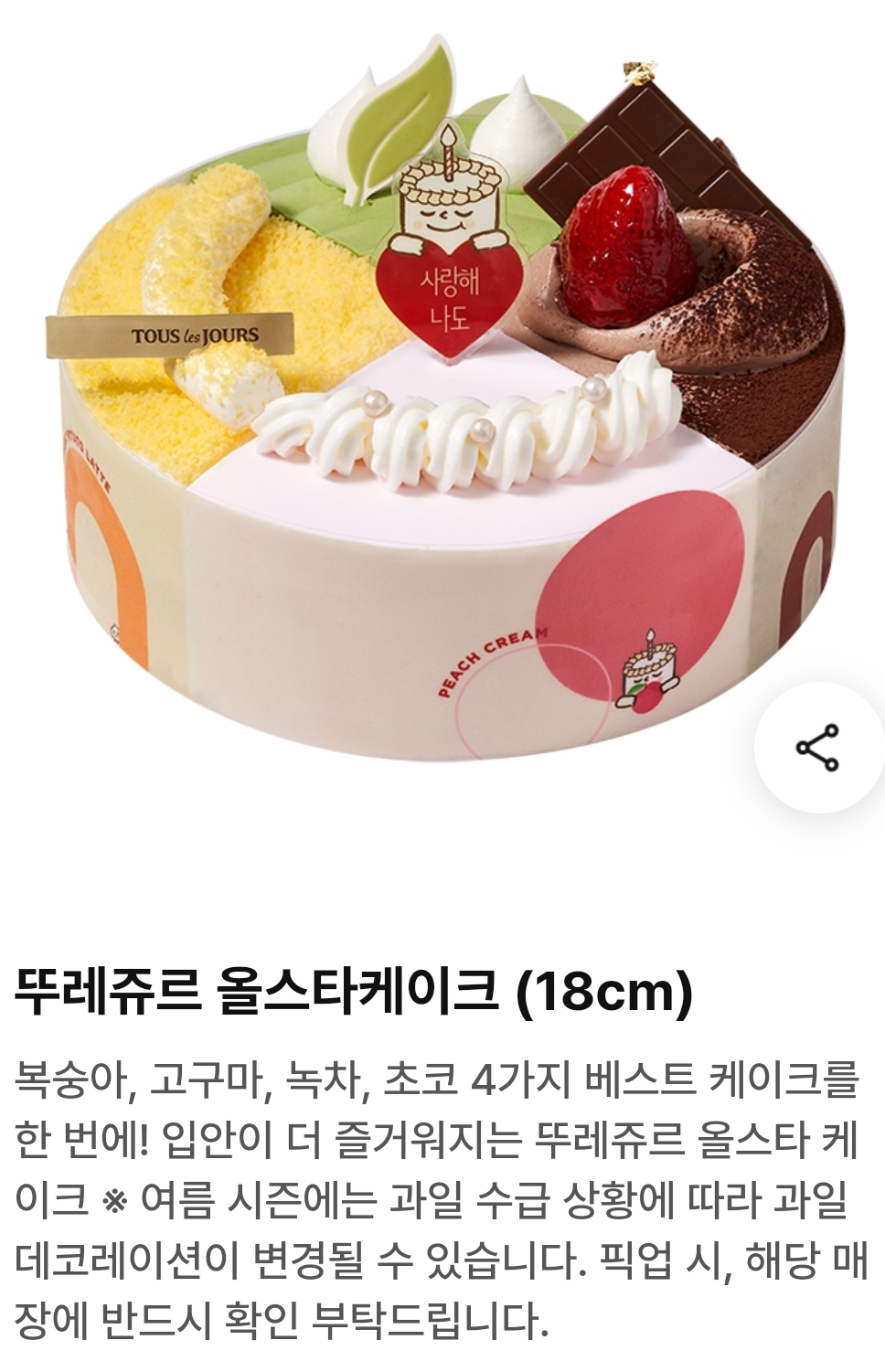 뚜레쥬르 올스타케이크 (18cm) 본문