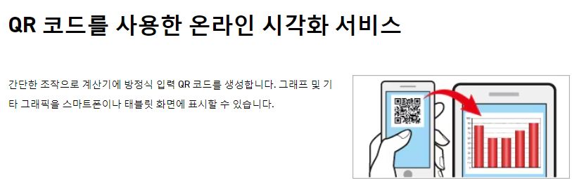 계산결과나 계산의 현재상태를 QR코드로 표시하고, 그것을 스마트폰으로 찍어 URL을 열면, 카시오가 지원하는 웹사이트에서 그래프를 보여주거나 추가 정보를 볼 수 있다고 합니다. 그리고 그 이름처럼 수업할 때 공유한다든가 하는 식으로 활용할 수 있다고 하네요. 이건 카시오가 따로 사이트를 열어 소개하고 밀고 있습니다. 이것만 따로 적을 링크와 내용이 많습니다.