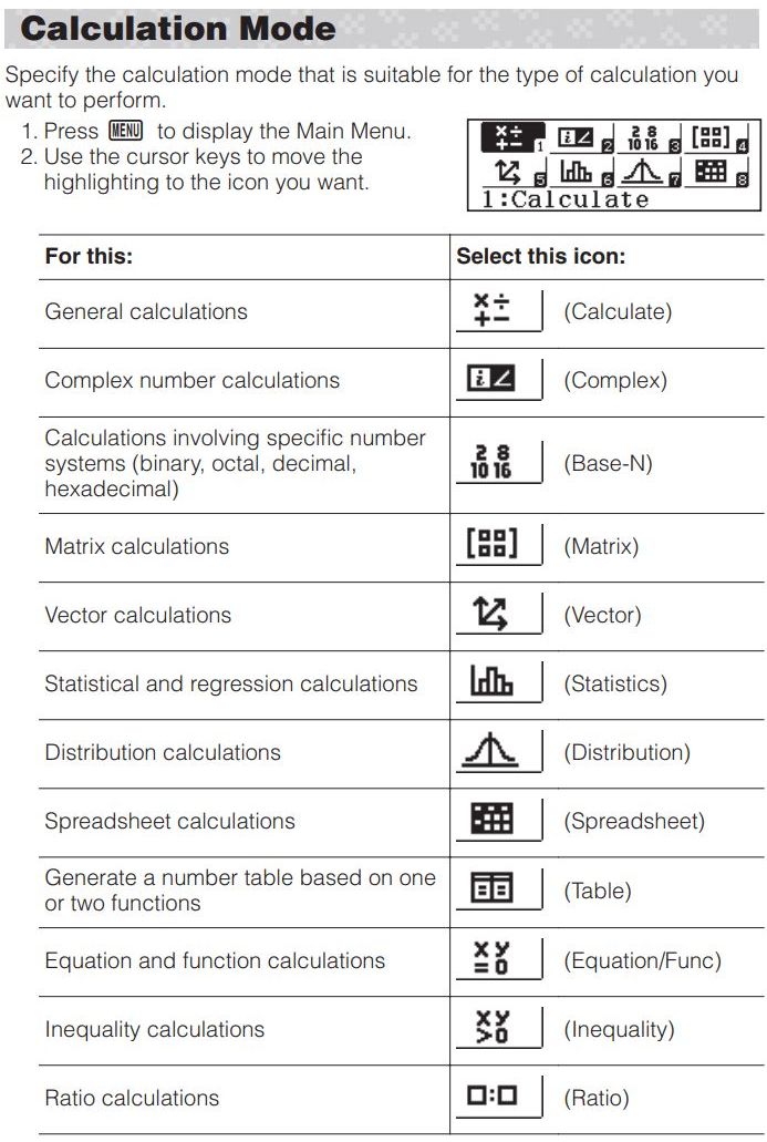계산기 기종별 간단 기능비교 차트 링크. 상세한 부분은 설명서 참조.