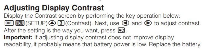 보기에 LCD화면이 선명하지 않다면 디스플레이 콘트라스트를 조절해보기. 만약 그래도 흐리다면 (이건 태양전지가 붙어있기는 하지만) 전지를 갈아볼 것.