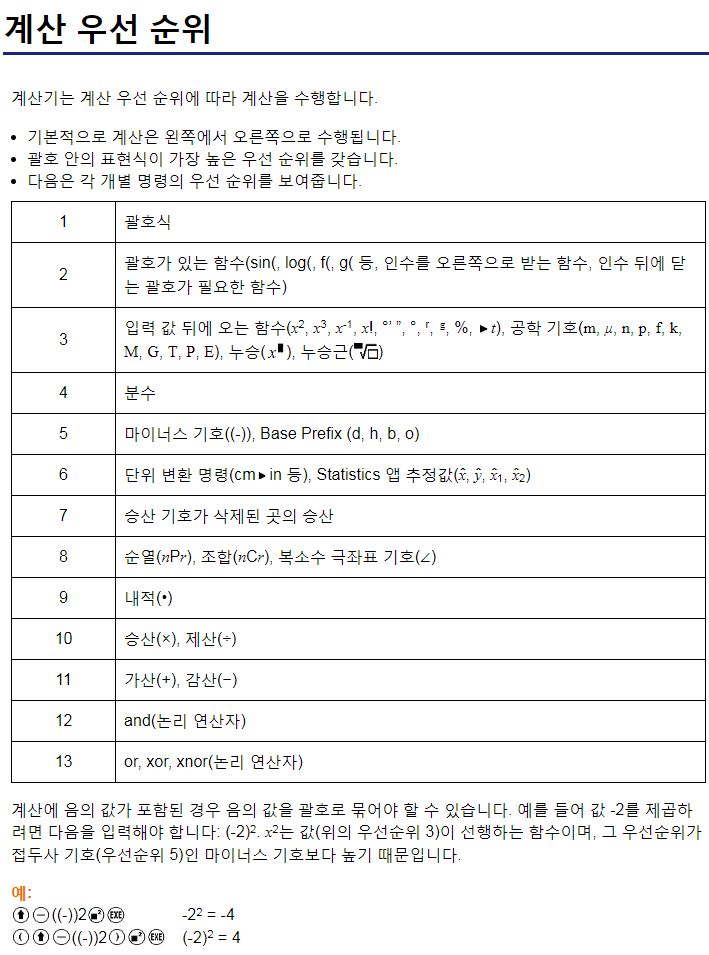 fx-570CW | fx-991CW 공학용 계산기 설명서, 웹버전
