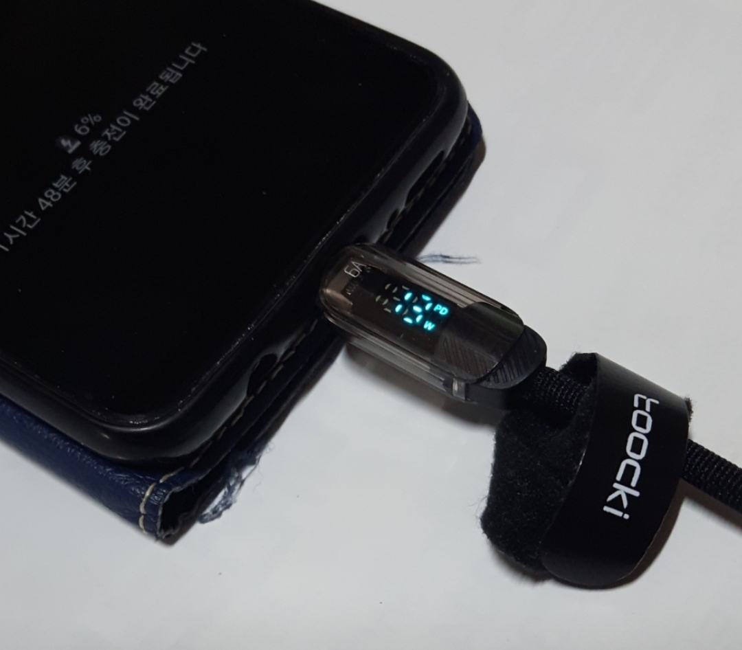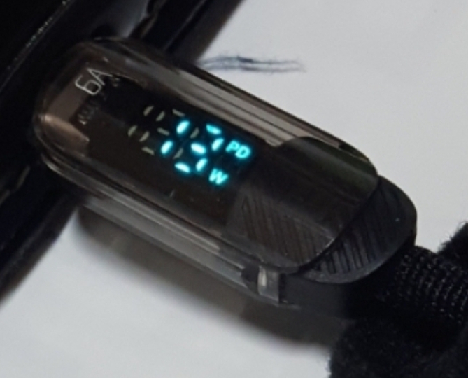 (같은 브랜드의, 4천원 내외인 다른 LED 디스플레이 케이블은 소수점 첫 자리까지 표시되는 게 있었습니다. 할인쿠폰이 없으면 값차이는 많이 안 나니까 재미를 원한다면2 그걸로 골라도 상관없을 듯. 양쪽이 암수 C타입 잭인 젠더처럼 생겼으면서 와트수가 표시되는 놈도 있는데, 그건 충전케이블은 따로 사야 합니다)