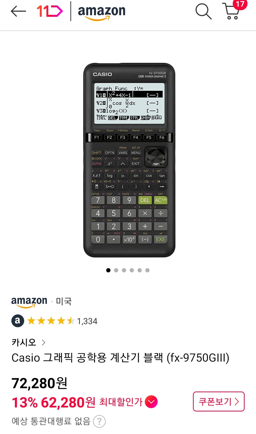 (11번가-아마존) Casio 그래프 공학용 계산기 fx-9750GIII(화이트, 핑크 ~6.2만, 블랙 ~6.3만/우주패스+추가쿠폰받은사람) 본문