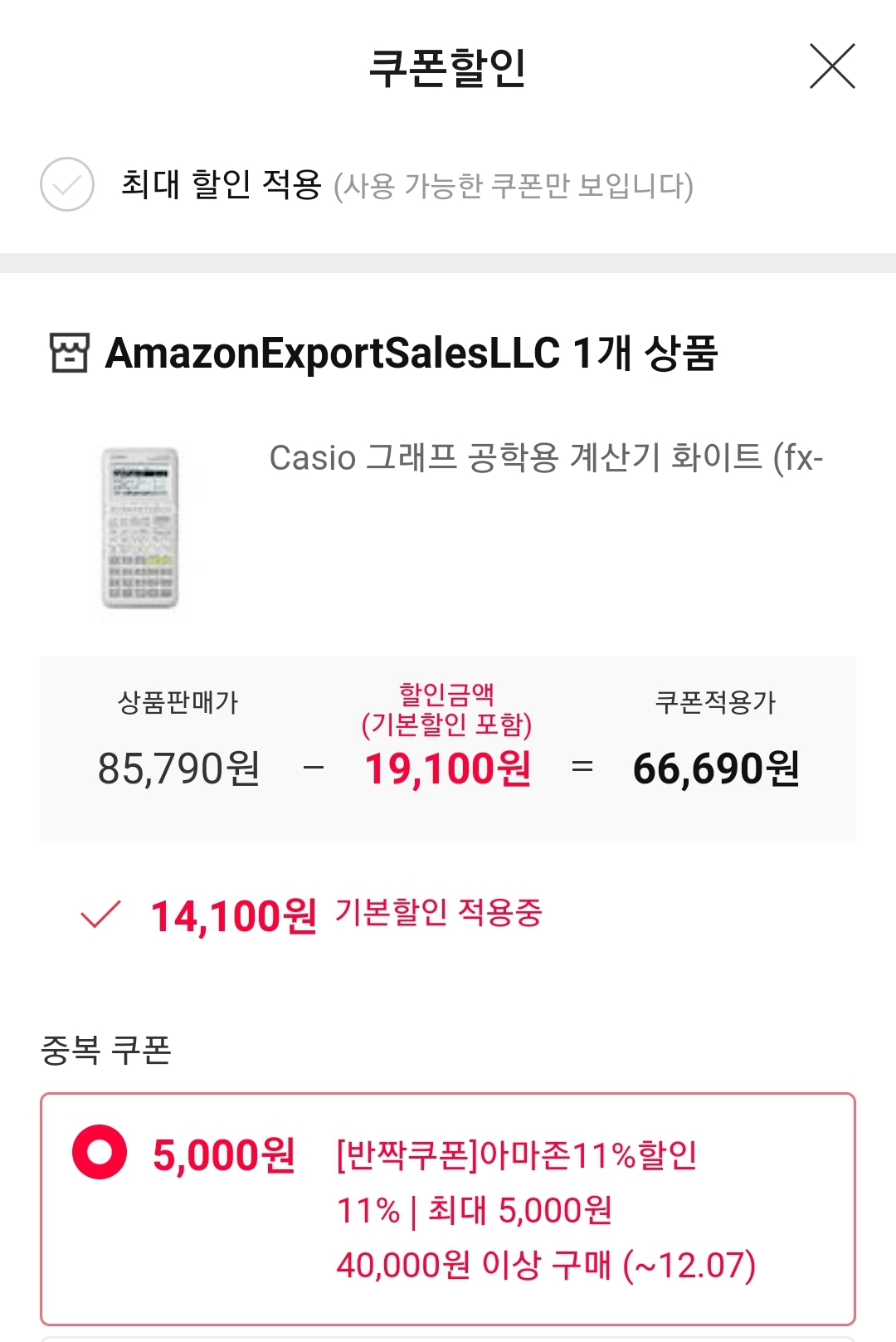 11번가 우주패스회원이면서, 아마존 반짝쿠폰이 계정에 들어온 사람 기준 가격입니다.