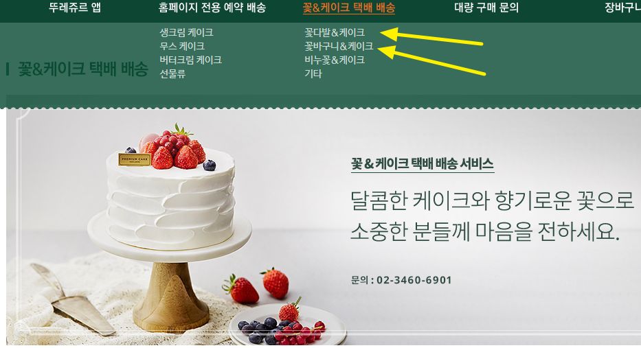 뚜레쥬르, 꽃다발/꽃바구니/비누꽃과 케이크 택배 배달상품 본문