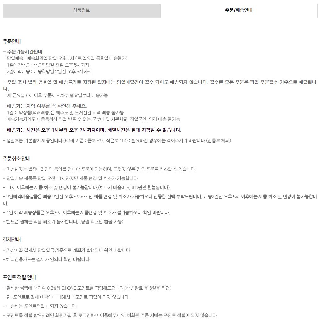 - 11시 이후에는 제품 취소 및 변경이 불가능합니다.(취소시 배송비 5,000원만 환불됩니다)