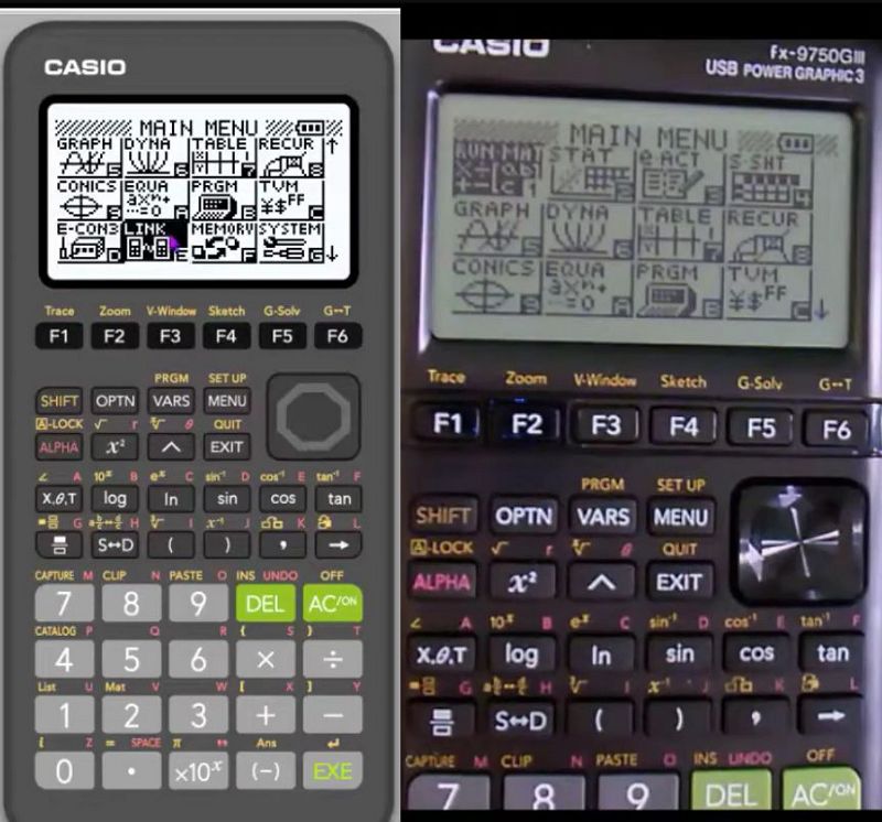 왼쪽은 에뮬레이터화면, 오른쪽은 실제 계산기화면.