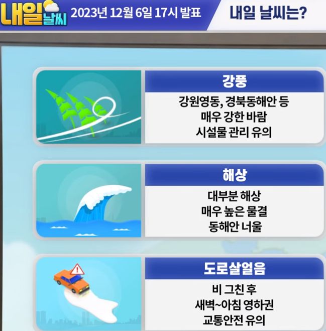2023.12.7. 태백산맥주위와 동부 추위, 강풍 본문