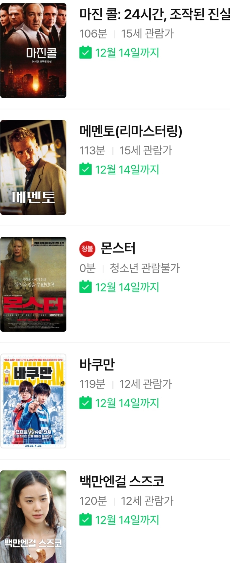 (네이버시리즈온 무료영화) 바쿠만, 마진콜, 메멘토, 패밀리 맨, 백만엔걸 스즈코 등 본문