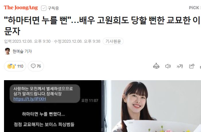 "하마터면 누를 뻔"…배우 고원희도 당할 뻔한 교묘한 이 문자