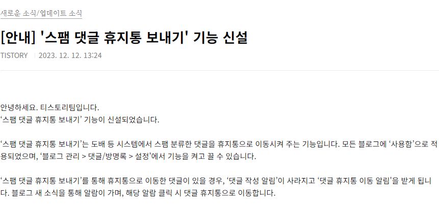 [안내] '스팸 댓글 휴지통 보내기' 기능 신설