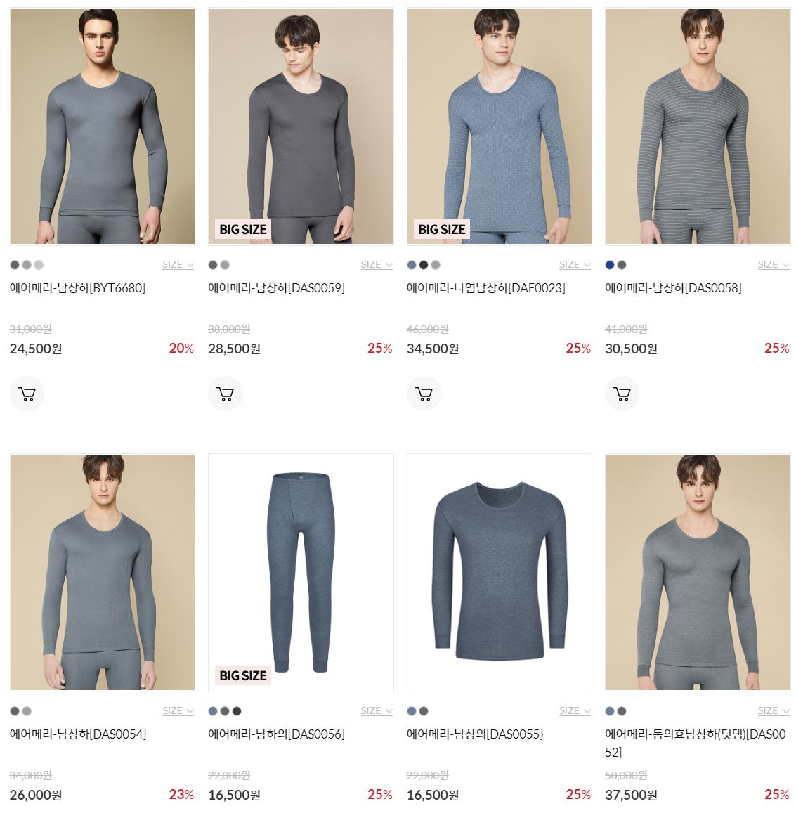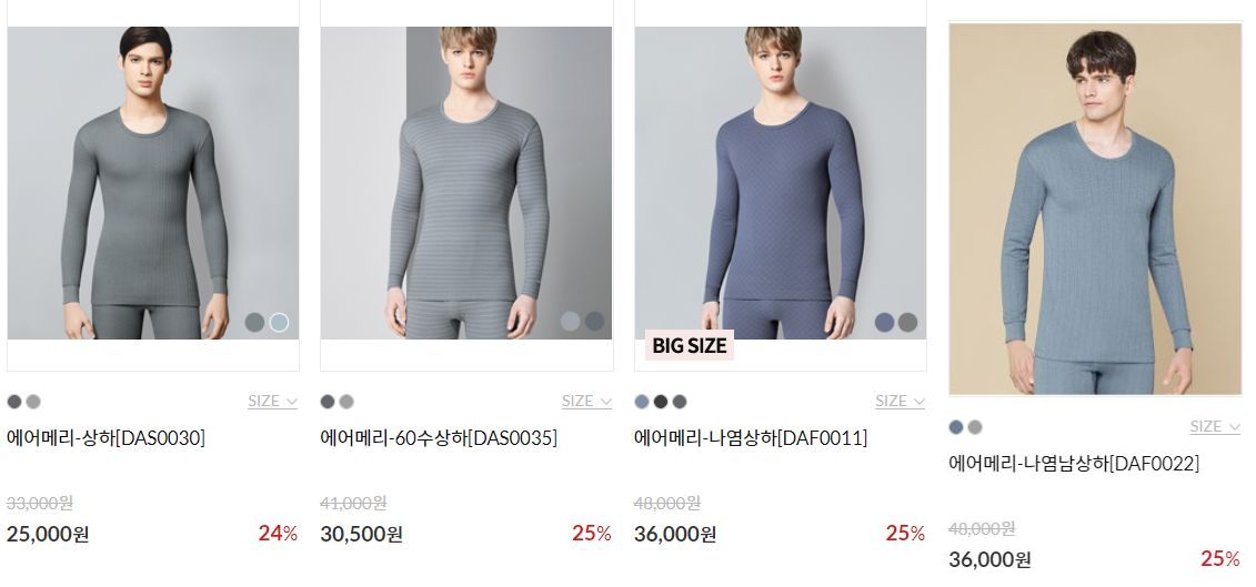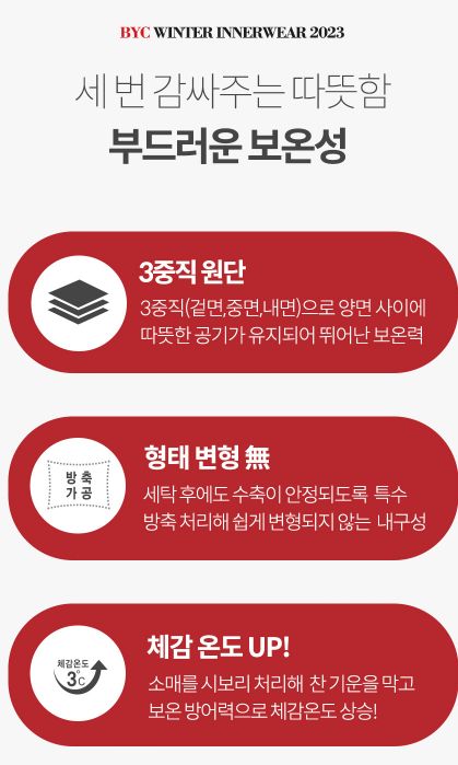 2023 겨울, BYC 남성 겨울내복(동내의) 중 삼중직 라인업 메모 본문