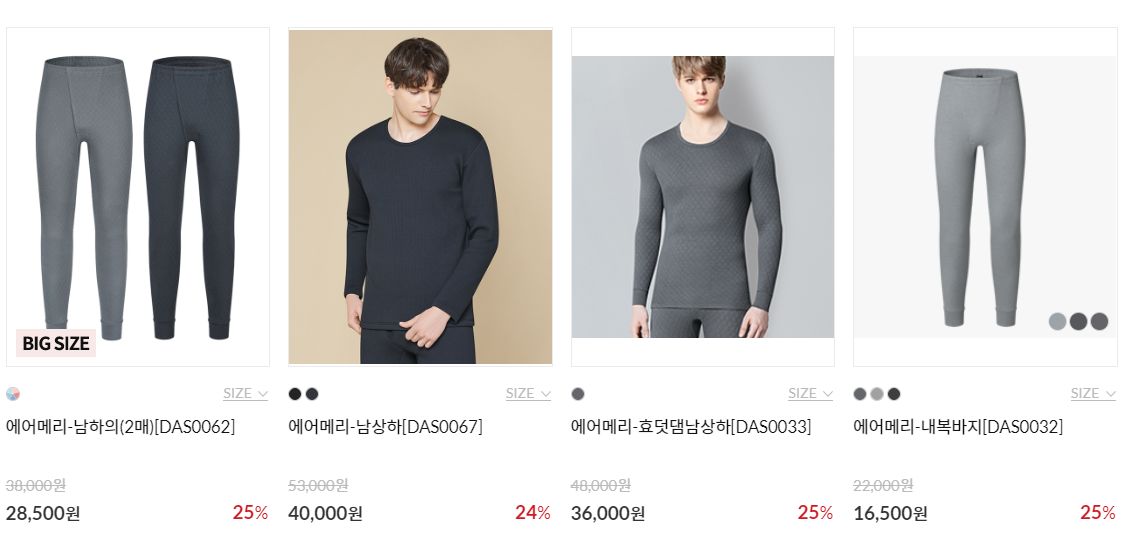 이것말고 얇은 내의와 방한내의라고 더 두꺼운 라인업이 따로 있습니다..