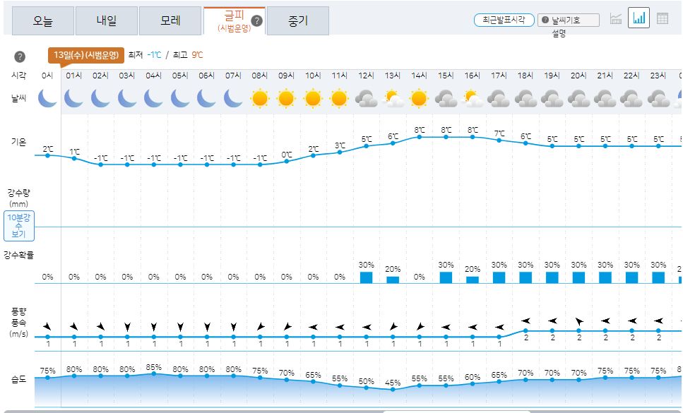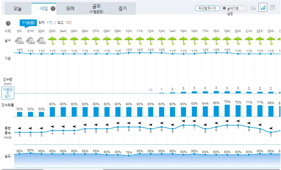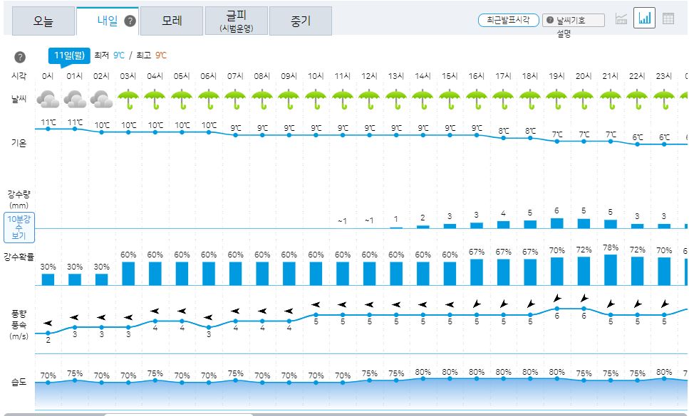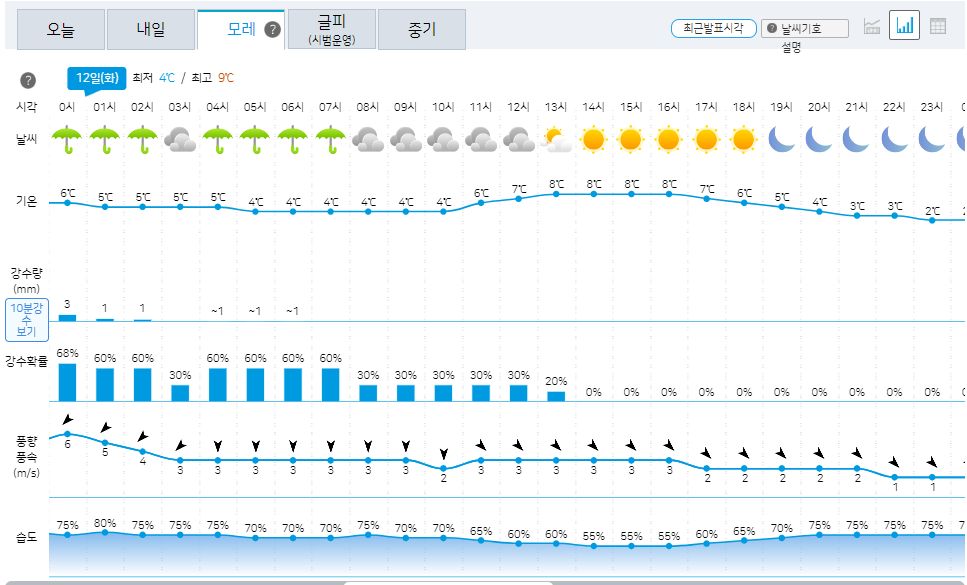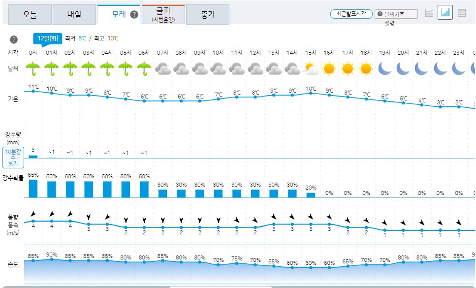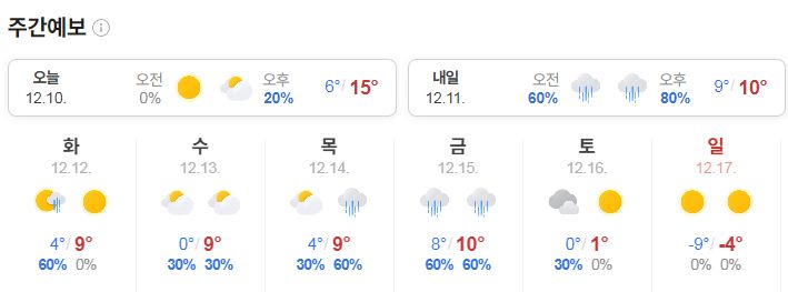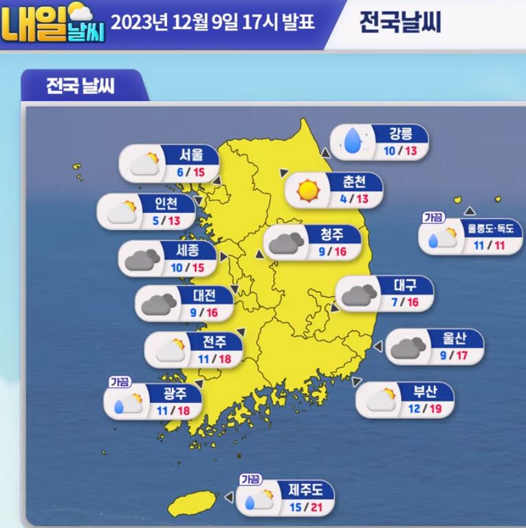 12월 10일 날씨 (9일 저녁 5시 기준)
