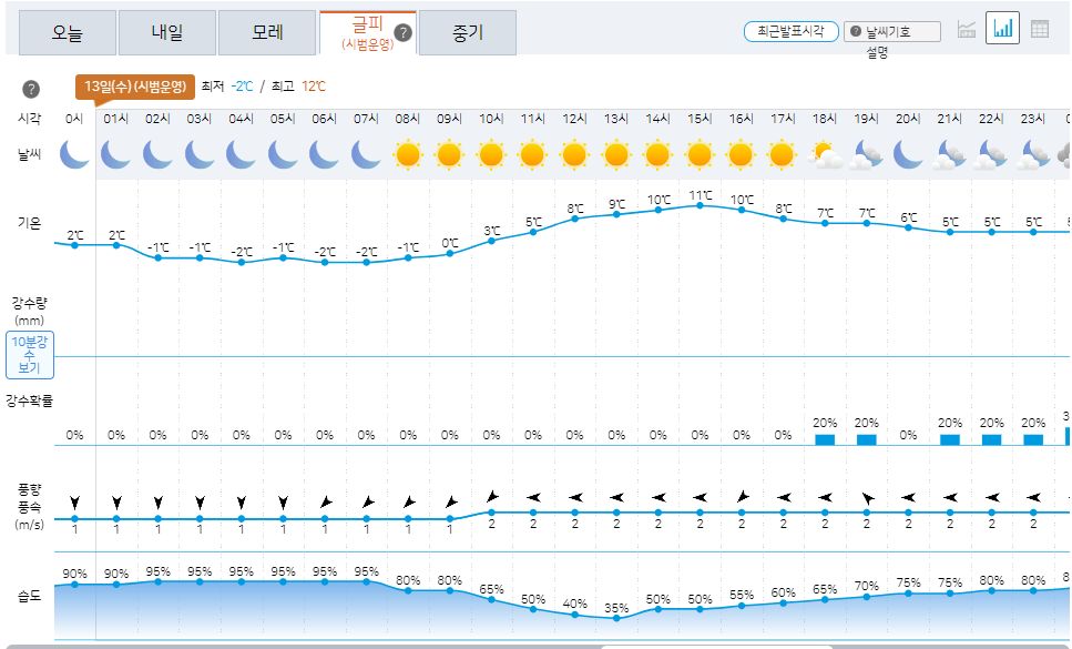 하지만 12월 16일 토요일은 아침 낮 모두 하루 종일 0도 정도다가,