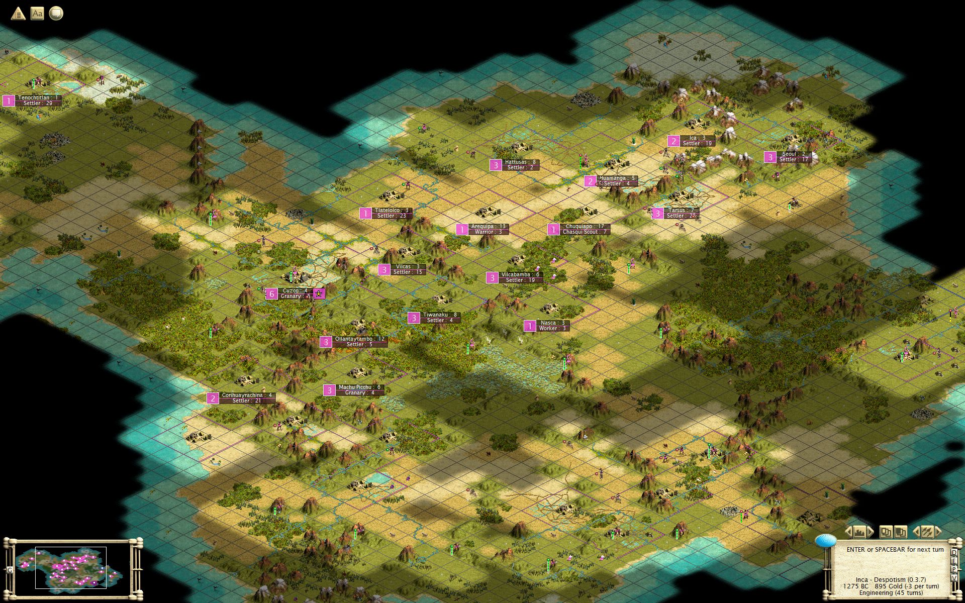 시작할 때 나오는 유닛이 세틀러/워커/스카웃인데, 워커는 경작하거나 도로를 짓지 말고 탐험용으로 사용한다. 그런 일은 노예워커에게 시킨다.