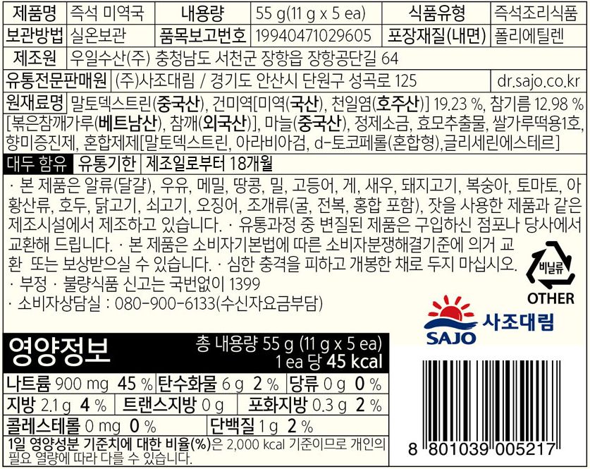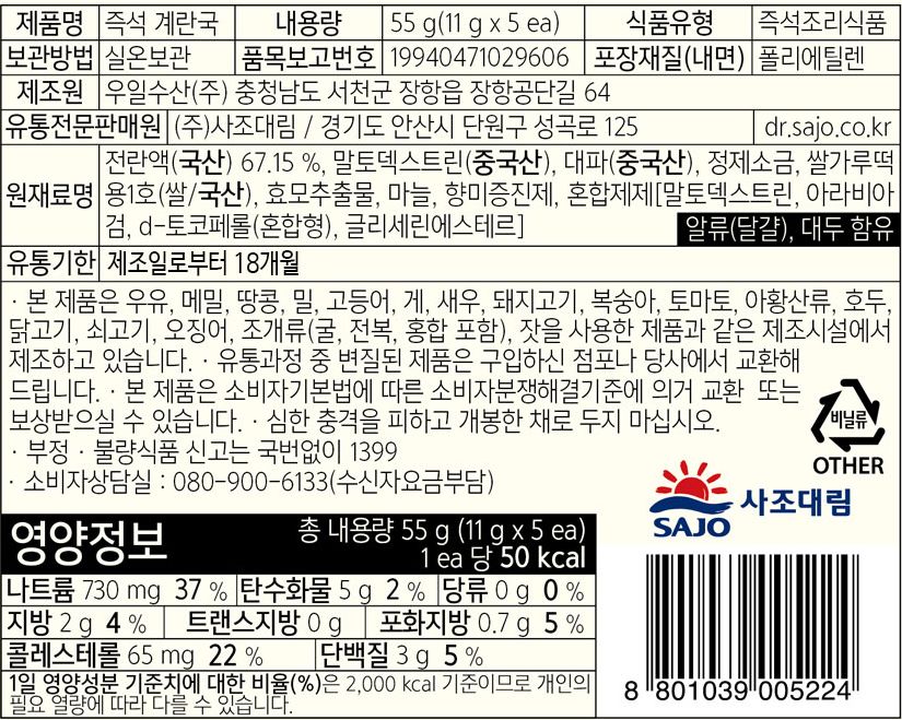 사조 대림선 24/7 즉석국(블럭국) 3종: 계란국, 된장국, 미역국 본문