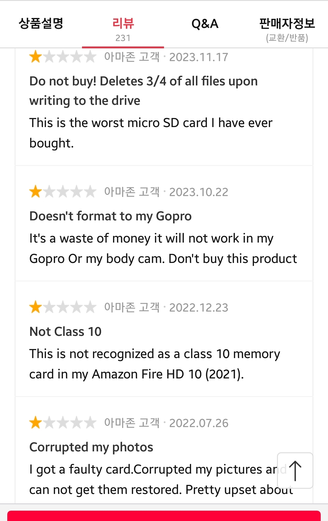 옥션-지마켓에 이어 11번가-아마존에도 등장한 '가짜용량(사기)' 메모리카드 본문