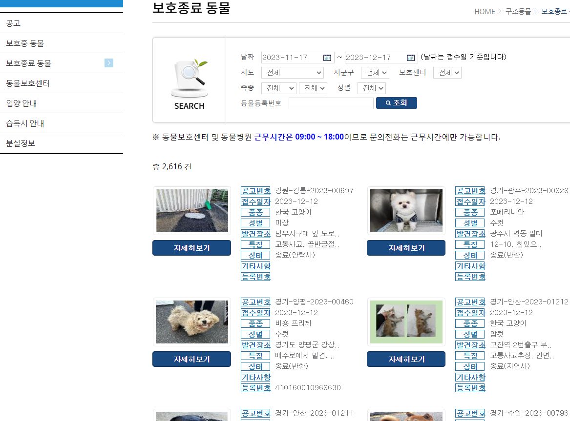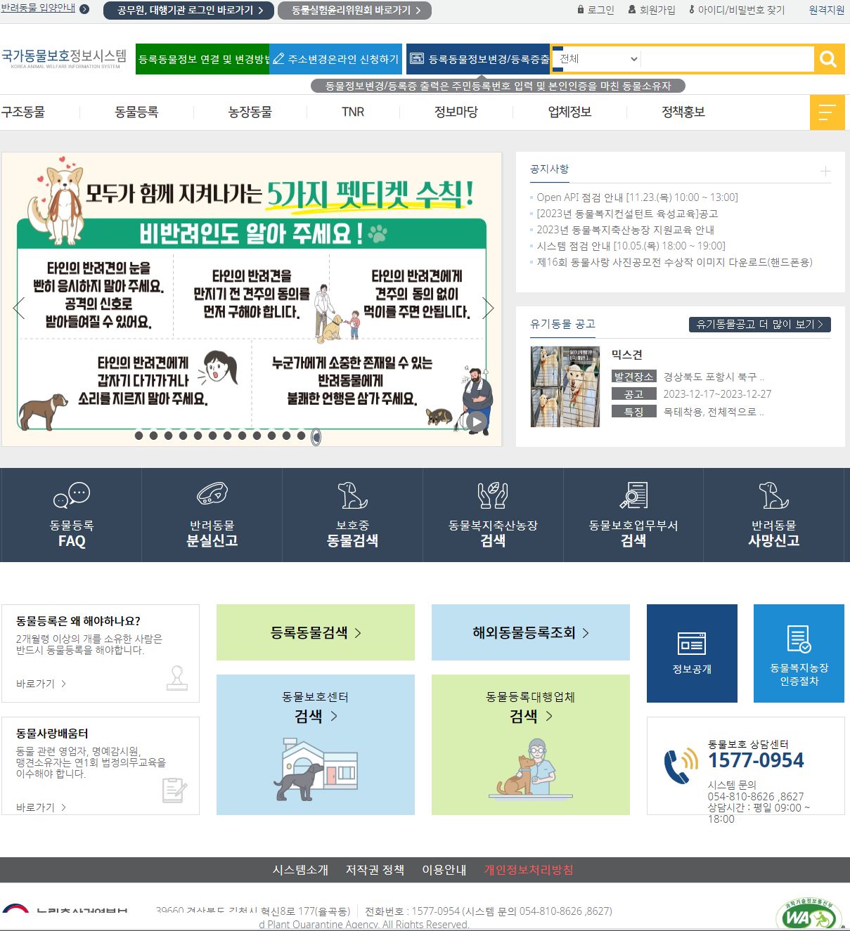 국가동물보호정보시스템 (반려동물, 애완동물) 본문