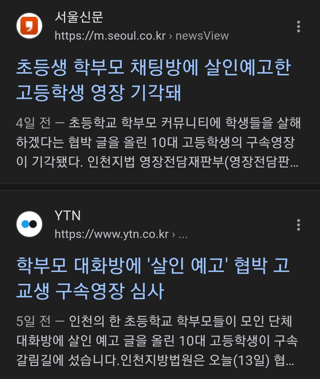 초등학교 학부모 커뮤니티에 학생들을 살해하겠다는 협박 글을 올린 10대 고등학생의 구속영장이 기각됐다. 인천지법 영장전담재판부(영장전담판사 이규훈)는 협박, 위계에 의한 공무집행방해