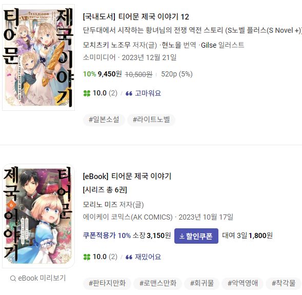 교보문고기준으로, 라이트노벨 소설은 12권까지 종이책이 나왔습니다. 아, 전자책도 있네요.