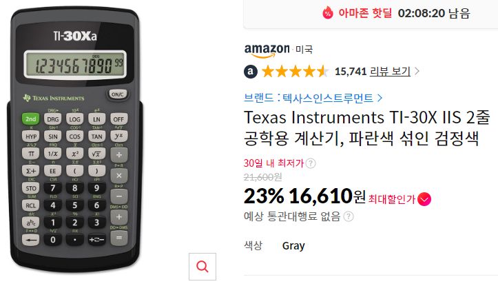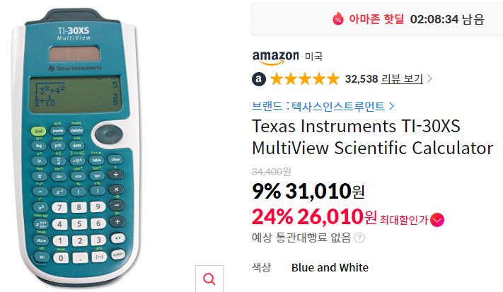 이건 링크는 추천인링크를 넣었지만 추천은 아닙니다. 왜냐 하면 제가 쓸 데가 생각나지 않기 때문에. ^^a 우리나라에서는 TI보다는 카시오가 쓰기 낫다는 말이 있기도 하고.. 일단 TI계산기가 세일에 올라온 건 잘 보지 못해 기록용입니다.