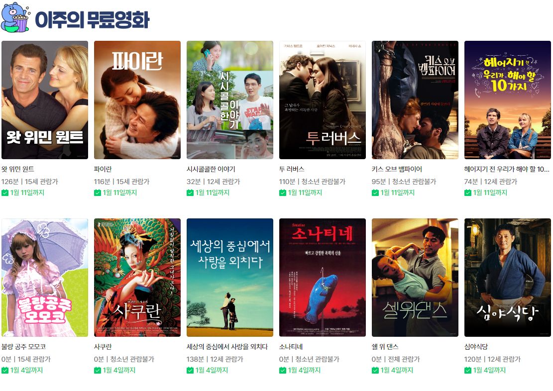 (네이버시리즈온 무료영화) 왓 위민 원트, 파이란, 시시콜콜한 이야기, 키스 오브 뱀파이어, 쉘 위 댄스, 심야식당 등 본문