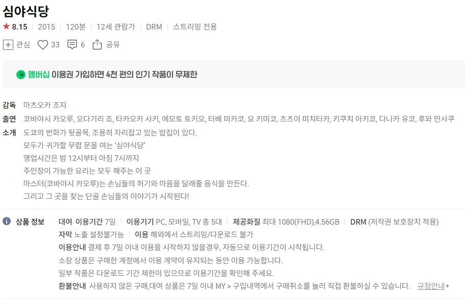 구작 중에서 볼 만한 게 있네요. 심야식당이나 볼까..