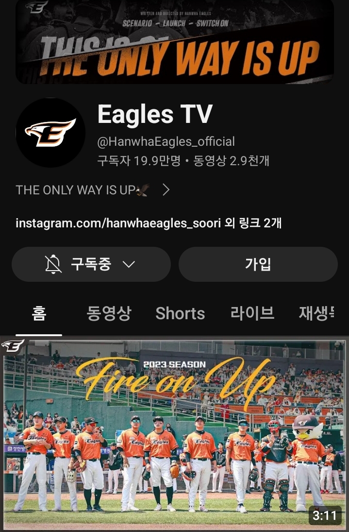 THE ONLY WAY IS UP🦅 한화이글스의 공식 youtube 채널 'Eagles TV'입니다