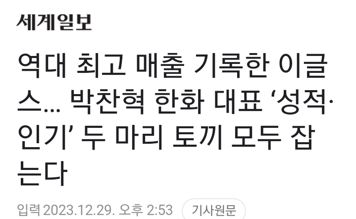 역대 최고 매출 기록한 이글스… 박찬혁 한화 대표 ‘성적·인기’ 두 마리 토끼 모두 잡는다