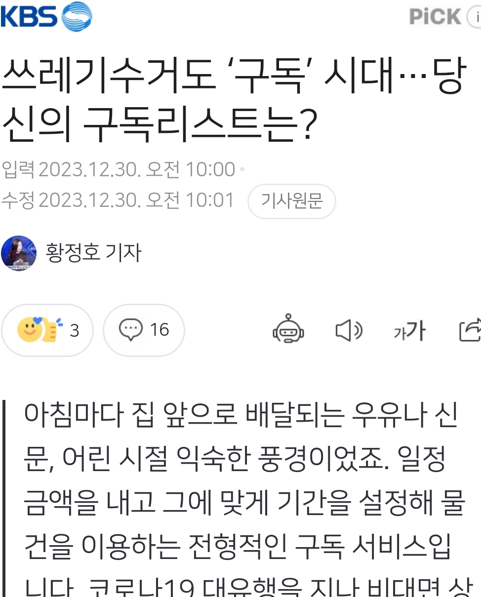 쓰레기수거 구독서비스 (기사) 본문