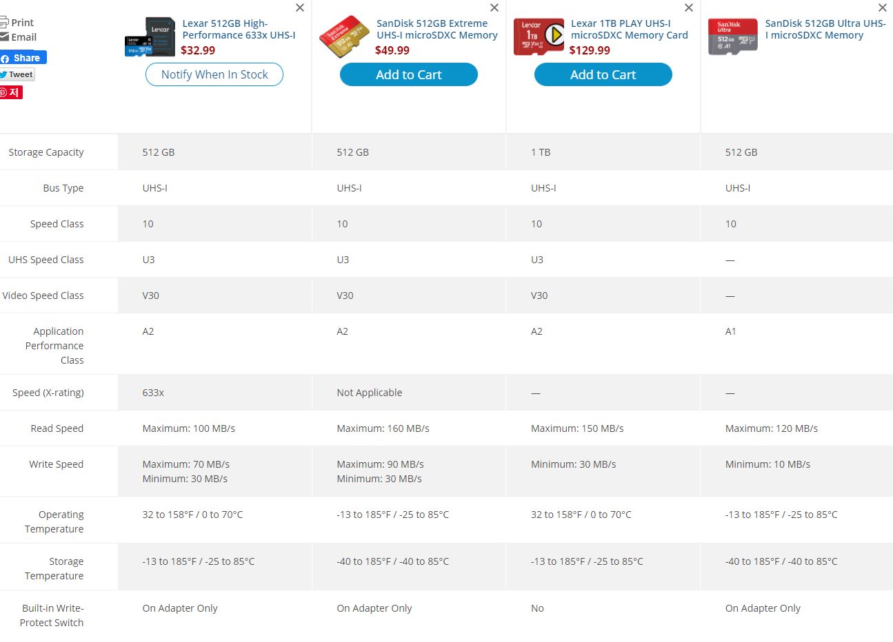 렉사 Lexar 512GB microSD 메모리카드 사양 (633x, 1066x, PLAY 제품)/:/ 렉사 메모리카드의 동작온도 보장범위 본문