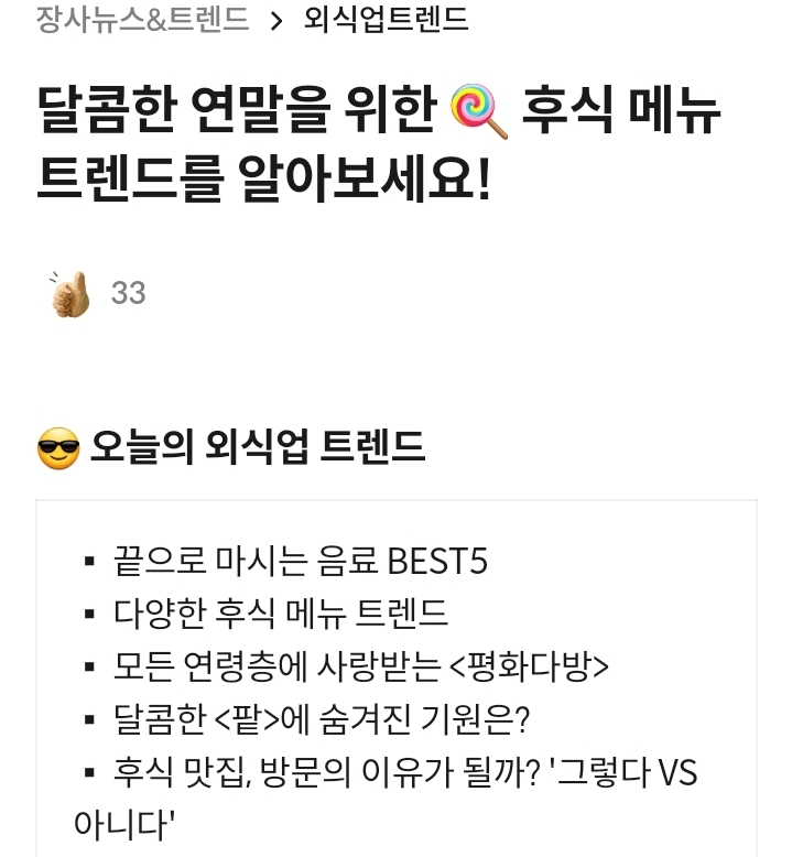| (배민외식업광장) 외식업트렌드: 식(食)별력 (0) | 2024.01.05 |