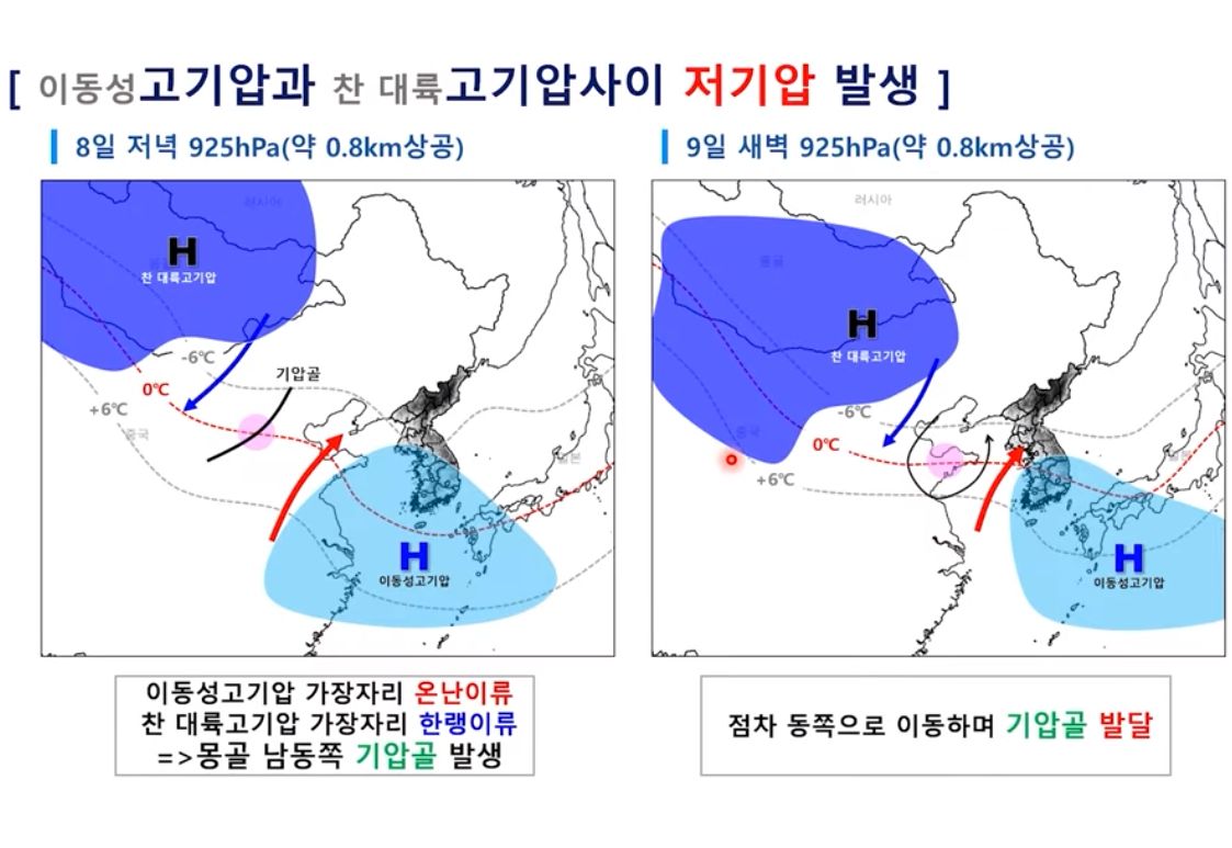 그리고 동아시아 기류와 한반도 대기 상층과 하층,