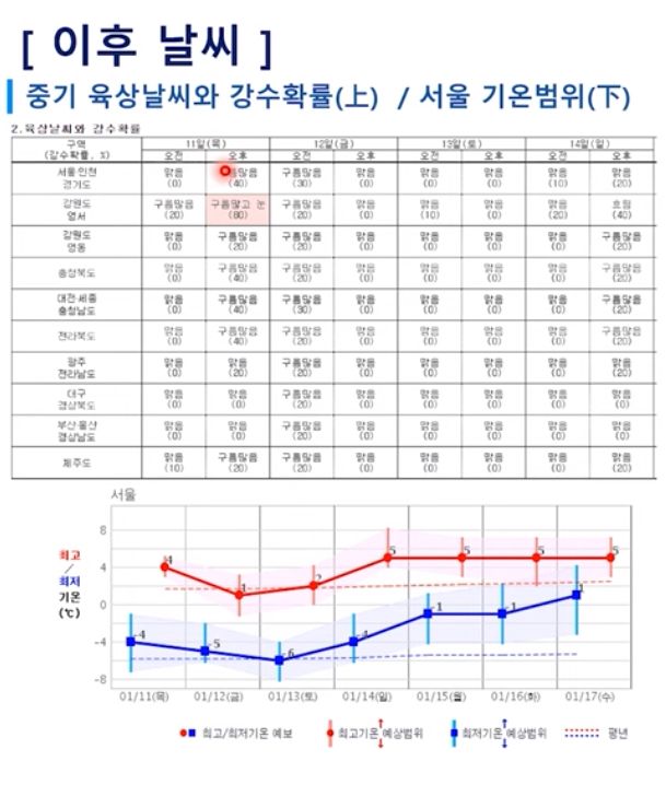 8일 저녁 기상청 중기예보)
