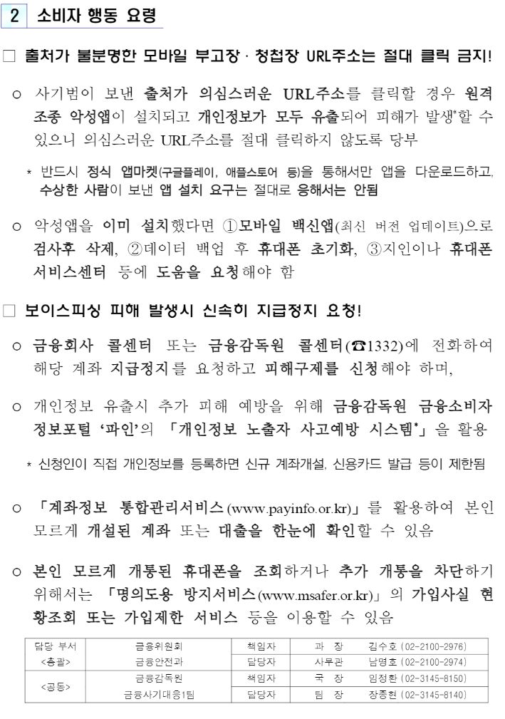 정부부처나 유관기관 직원을 사칭한 부고나 청첩장 등의 문자·카카오톡 피해: '열기'로 유도하는 앱설치금지. 소식이 사실인지 반드시 다른 사람에게 확인 필요 본문
