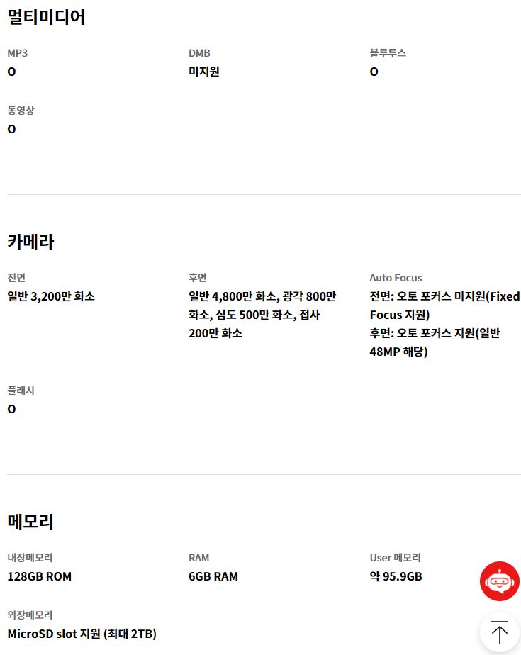 CPU : 퀄컴 스냅드래곤 765G (2.4㎓)