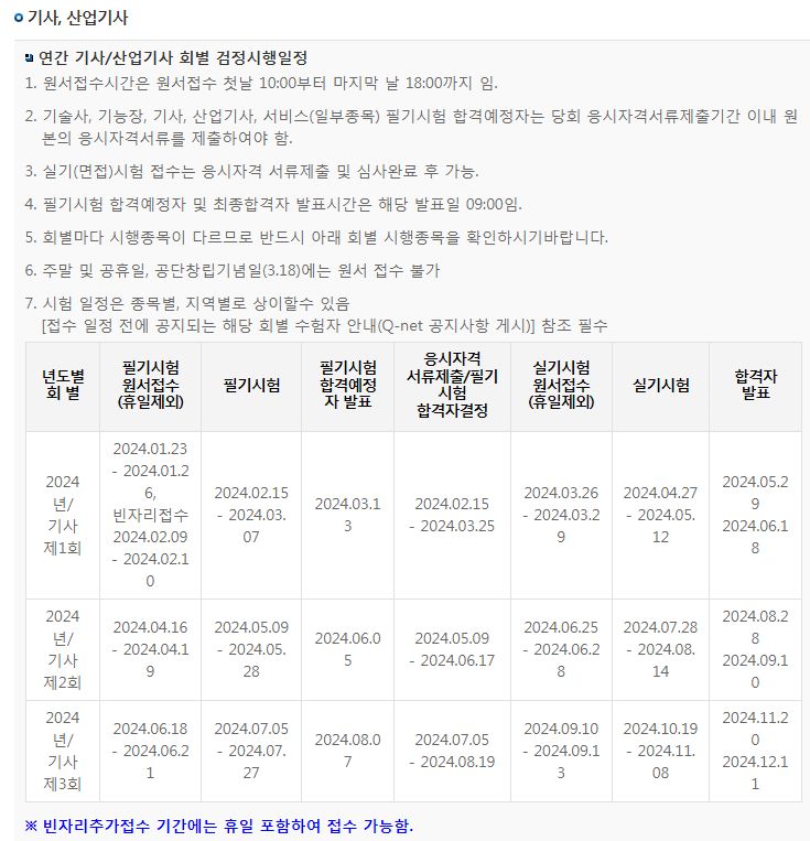 2024년 제 1회 기사, 산업기사 시험일정: 1월 23일~26일 접수, 2월 15일 필기시험 본문