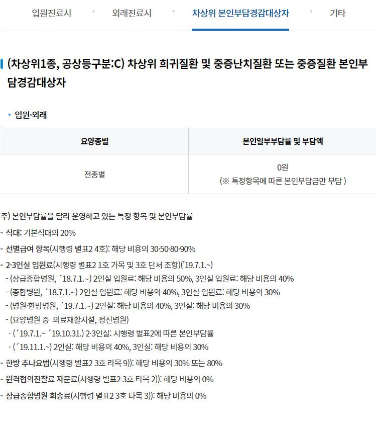 (차상위1종, 공상등구분:C) 차상위 희귀질환 및 중증난치질환 또는 중증질환 본인부담경감대상자